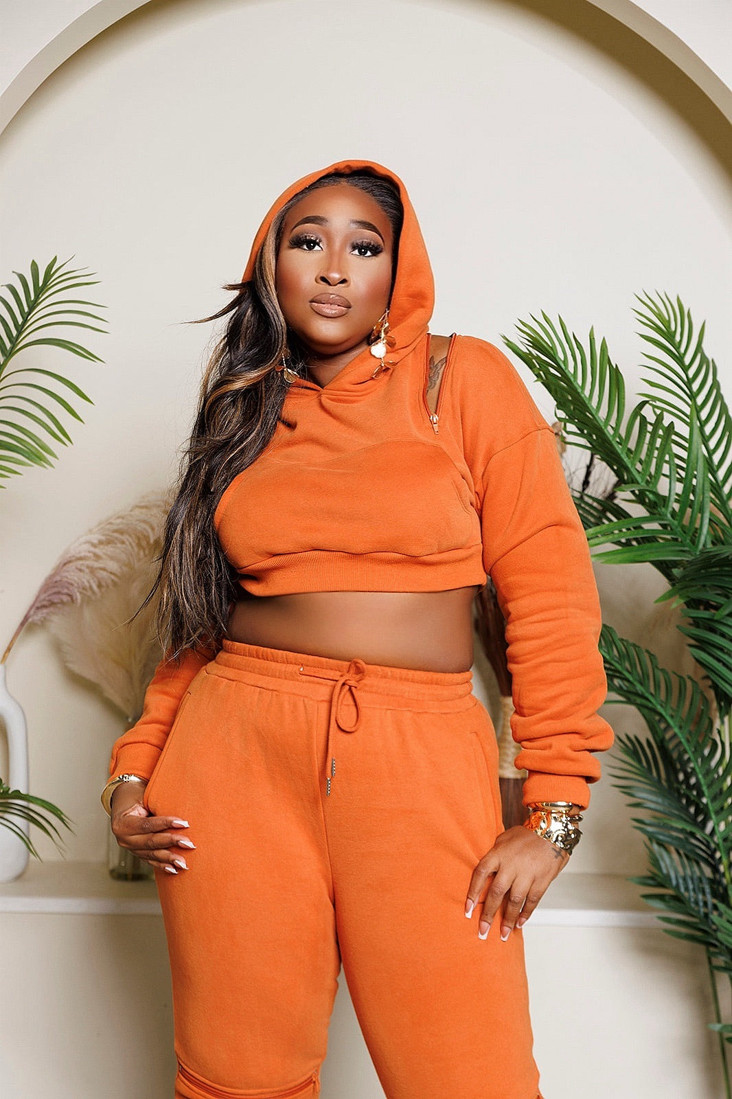 Unleash the essence of street style with our chic hoodie set, such a masterpiece. This cropped hooded sweater is a symphony of detail zippers that definitely demand attention and define the silhouette.